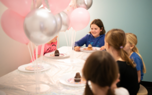As the slime-making concludes, the party moves toward its final celebration. This is the perfect time for birthday cake, snacks, and singing “Happy Birthday.” Mindful Child Aerial Yoga offers a designated area called the “party room” for this part of the event.