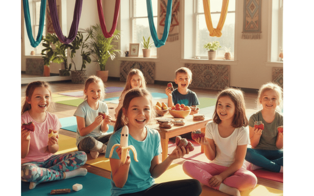 Getting kids to eat healthy, organic foods can sometimes feel like an uphill battle. That is exactly why we integrated mindful eating into our kids’ aerial yoga camps and classes. We transform snack time from a rushed necessity into an engaging, sensory-rich experience.